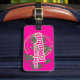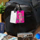 en route pour l'aventure graphisme français tag signifiant chemin vers l'aventure. Étiquette en rose vif vous aidant à trouver votre coque plus facile. Customisez le verso de cette balise avec vos nom et adresse. Conçu exclusivement par Sarah Trett.