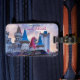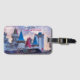 Bagage Tag représentant l'Excalibur Castle Hotel sur le Strip de Las Vegas en une journée nuageuse avec beaucoup de détails architecturaux de beaux nuages. Le Monorail moderne est en train de passer par le Moyen Age comme un bâtiment dans une sorte de mondes parallèles. Entièrement personnalisable !