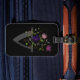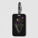 Le design présente Monogram plus Flowers dans un design floral. Initial est la lettre V. Black Luggage Tag.