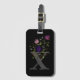 Le design présente Monogram plus Flowers dans un design floral. Initial est la lettre X. Black Luggage Tag.
