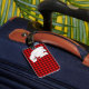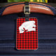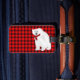 Un ours polaire orné d'écharpes assorties en plaid de buffle ornent cette étiquette de bagages. Option pour ajouter votre nom, email, téléphone et pays sur le dos pour référence pratique en coque de sac perdu.