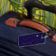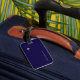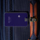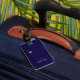 Un accessoire de voyage bleu foncé simple, discret et facilement reconnaissable (étiquette bagage), personnalisé avec votre propre nom et vos initiales, avec l'image d'un petit avion... pour identifier vos effets personnels.