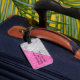 À Bagage Étiquette décorée d'un monogramme rose et argentée