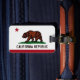 Un drapeau d'état de Californie graphique sur une étiquette de bagages. Le bagage a des modèles pour votre personnalisation sur le dos.