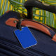 Bagage Tag avec design avec un drapeau du comté historique de Lincolnshire, en Angleterre, Grande-Bretagne; drapeau vert et bleu avec croix rouge et jaune et une fleur de Lis au centre