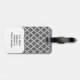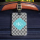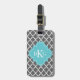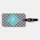 Montrez-vous le style avec des initiales marocaines simples, mignonnes, modernes et à la mode d'étiquette qui est monogramme fait sur commande avec votre premier, de milieu et de nom de famille de bagage de voyage de conception de motif de forme de quatrefoil, de trellis ou de trèfle dans une police de très bon goût sur un côté et nom, le numéro de téléphone, adresse de l'autre côté. Cliquez sur la "personnaliser il" bouton pour personnaliser votre cadeau en ajoutant vos propres initiales. Choisissez votre propres police et couleurs, pour lui faire vos propres. Ce tage élégant et à la mode de bagage fera un grand cadeau pour vous-même ou quelqu'un que vous aimez. Perfectionnez pour Noël, des anniversaires ou n'importe quelle occasion. Arrière - plan gris-foncé et blanc de couleur avec un accent Quatrefoil turquoise et initiale blanche.