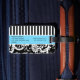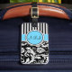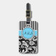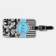 À Bagage Étiquette noire, blanche, bleue en rayures Damas