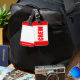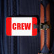 Étiquette rouge et blanche standard de "ÉQUIPAGE". Ajoutez vos propres détails au dos.