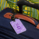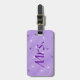 Peinture d'étoiles violettes et blanches sur un arrière - plan de lavande mélangé, avec Mme imprimée sur l'avant des étiquettes de bagages. Il y a un espace réservé pour le nom et l'adresse à l'arrière.