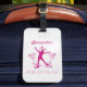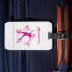 Marque de bagage colorée pour patineur artistique vedette - pour décorer et personnaliser les sacs ou les bagages de patinage sur glaceCouleur : tourbillon rose à rouge sur fond de glace blancheDesign : Doodle en étoile + silhouette d'une patineuse artistique + personnalisez avec le nom du patineur + "Star on the ice" ou un message personnalisé.