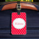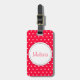 Une étiquette de bagage rouge vif est une étiquette d'identification de couleur vive qui vous aidera à trouver votre coque. Personnalisez avec vous le prénom sur le devant et l'adresse complète au verso. Joli design avec un simple motif à pois blanc et rouge fleur conçu par la designer Sarah Trett.