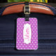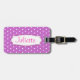Une étiquette de bagage violet de grande couleur vive nommée id tag pour vous aider à trouver votre coque. Personnalisez avec vous le prénom sur le devant et l'adresse complète au verso. Joli design avec un simple motif à pois de fleurs violet et blanc conçu par la designer Sarah Trett.