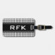 Masque de voyage monogramme masculin personnalisé. Design motif carré noir classique avec nom monogrammé blanc lettres initiales. e RFK Elégante idée cadeau pour les hommes modernes. Combinaison de couleurs masculines noir et blanc. Accessoire élégant pour sacs et valises.