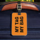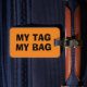 Mon étiquette mon sac | Balise bagage amusante pour valises de voyage. Joli design de devis pour les voyageurs. Design noir et orange pour les hommes, les femmes et les enfants en voyage.