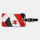 Cette étiquette de bagage à thème volleyball présente l'image réaliste d'un volleyball abstraitement surdimensionné qui a des panneaux rouges, noirs et blancs - personnalisez avec le nom du joueur et le monogramme sur le devant, l'adresse et le numéro de téléphone sur le dos - par katz_d_zynes