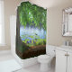 Un après-midi d'été paisible au bord d'un lac calme, face à l'ombre d'un érable rouge avec ses branches et ses feuilles verts qui surplombent le bord de l'eau. Des nénuphars flottent sur la surface brillante, et une cigogne est immobile dans l'eau, tandis que des libellules et des papillons dansent parmi les iris et les cattails qui bordent la rive. La lumière du soleil éclaire et éclaire les petits ondulations dans le lac.
