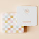 Carte d'affichage à oreilles avec un joli pastel à damiers motif. Les trous modèles peuvent être ajustés ou supprimés, ainsi que toutes les informations de votre entreprise. Ajoutez vos médias sociaux ou votre site web en bas.