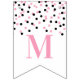 Bienvenue bannière maison avec motif confetti rose et noir.