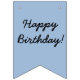 Bannière bleue de moustache et noire orientée de joyeux anniversaire