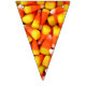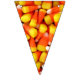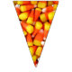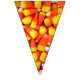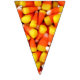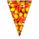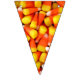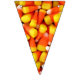 Photo de maïs bonbon sur chaque triangle de cette bannière colorée de l'Halloween. Cela vous aidera à faire de la décoration pour votre prochaine fête d'Halloween un clin d'oeil. Des bruits de brume orange et jaune mettront vos invités dans l'ambiance festive.