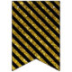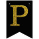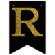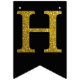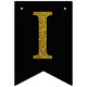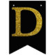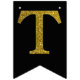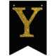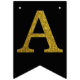 Lettres de parties scintillant simulées en or sur une couleur solide. Le Joyeux Anniversaire est accentué par des drapeaux aux rayures de parties scintillant en diagonale.