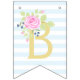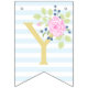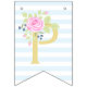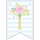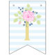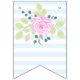 Joyeux Anniversaire Fancy Rose Bannière de Bunting Blueberry. Rose, feuilles verts, bleuets sur bandes bleues, lettres d'or (l'or n'est pas de l'or réel mais de la couleur). Fancy, féminine, joyeuse et ornée, avec un look et une atmosphère légèrement victorienne. Rose, bleu, violet profond, vert.