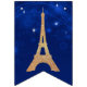 Bannière orientée chic d'étamine de Paris avec chaque drapeau fait dans un bleu-foncé, avec des étincelles et des étoiles. Le texte graphique de parties scintillantes d'or définit UNE NUIT À PARIS, avec Tour Eiffel de parties scintillantes d'or remplaçant l'invitation et les approvisionnements orientés de partie d'A. Matching Sweet 16 Paris de lettre disponibles.