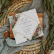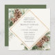 L'élégante faire-part de mariage à thème hivernal présente un cadre doré entouré d'aquarelles à feuillage persistant, de pins et de fleurs d'hiver. Personnalisez avec vos informations ou cliquez sur "Cliquez pour customiser plus loin" pour modifier les styles, la taille et les couleurs des polices.