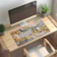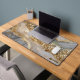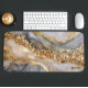 A luxurious gold and white marble background with metallic veins and soft flowing gradients. The elegant shimmer and fluid stone design make this texture stand out. You can personalize this desk mat with your name.