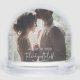 A beautiful gift for newlyweds, this snow globe provides the option for front and back photos. Customize the globe by adding the name of the couple, while the back provides a date and special quote for their special day.