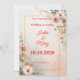 An elegant wedding invitation with a delicate design inspired by the serene beauty of flowers, combining soft pastel colors with sophisticated gold accents adds a touch of luxury and refinement. The design features a smooth watercolor background and tastefully placed floral motifs in the corners, with a simple gold border that gives the invitation balance and elegance without being over the top.