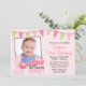 Invitations orientées de fête d'anniversaire de hibou mignon ?ères. Une conception douce dans rose, vert et brun pour un premier anniversaire de petite fille. Ajoutez une photo pour faire ce special d'invitation. Quelques graphiques par www.jwillustrations.com