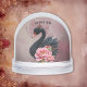 A touch of rose and swan's glow. This enchanting design depicts an elegant black swan, immediately eye-catching with its smooth, dark plumage and bright orange beak. A delicate floral arrangement perches atop its head, emphasizing its regal grace. Delicate pink blossoms, presumably peonies, are artfully grouped around the swan's body, lending the image a romantic and elegant touch. The background consists of a gentle gradient in shades of pink, immersing the scene in a dreamy, almost magical atmosphere. The interplay of the jet-black feathers, the vibrant flowers, and the soft gradient creates a harmonious overall image full of grace and love.