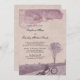 Cet invitation de mariage du motard 5x7 a un arrière - plan de paysage coloré par pourpre pâle avec quelques nuages gonflés pourpres mous au dessus. Au en bas à droite, il y a une équitation de vélo sur la route. Vous pouvez facilement customiser les détails de cérémonie de mariage du côté gauche.
