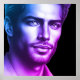 A young man, in red and blue, on a poster for your bedroom, living room or office walls.