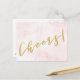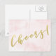 NouvelleAlléeParc - Carte postale élégante, avec vœu 'Tchin !' en typographie élégante de faux doré à la feuille, sur un fond aquarelle rose tendre.