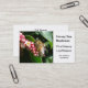 Un carte de visite approprié à n'importe quelle abeille a rapporté des affaires. Il comporte une photographie d'une abeille de miel rassemblant le nectar et le pollen des fleurs roses et blanches d'un arbre fleurissant. La photo de l'abeille a été prise assez étroitement que vous pouvez voir les veines dans les ailes, les poils là-dessus est corps et le pollen qu'il s'était déjà rassemblé là-dessus est jambe.