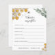 Demandez aux clients de la douche de remplir ces adorables souhaits pour les cartes bébé à votre baby shower. Doté d'une végétation aquarelle, d'eucalyptus, d'ruches et d'abeilles en or. Personnalisez le avec le nom de maman-à-abeille et la date de la douche.