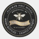 Le Étiquette noir avec l'abeille Vintage est doté d'une double bordure blanche entourant votre nom et votre emplacement de l'abeille. Le nom de l'abeille est affiché en texte incurvé sur le dessus et la ville et la ville de l'apiculteur sont écrites en texte incurvé sous le nom de l'abeille. Il y a une bordure délicate blanche et taupe près du périmètre extérieur du étiquette. Les mots "PURE RAW HONEY" sont écrits sur une bannière ondulée de dégradé d'or au centre du étiquette (et peuvent être supprimés et remplacés par le mot "HONEY" par "démasquer" l'icône du globe oculaire à gauche du mot HONEY à la ligne 1 du PANNEAU DE CONCEPTION)