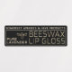 Ces étiquettes durables collent bien sur des contenants de plastique moyen brillant à lèvres. Le texte de style "BEESWAX LIP GLOSS" se lit comme suit : "BEESWAX LIP GLOSS" pour un look élégant et élégant. Abeille "Embossée" sur étiquette noir jet avec votre nom ou nom commercial et description/parfum du produit dans le texte or.