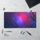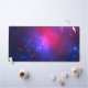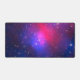 Abell 2744, Pandora's Cluster. Cette grappe de galaxies géantes est le résultat d'une accumulation simultanée d'au moins quatre amas de galaxies séparés et plus petits qui ont eu lieu sur une période de 350 millions d'années. Les galaxies de l'amas représentent moins de 5% de sa masse. Le gaz (environ 20%) est si chaud qu'il ne brille que par rayons X (couleur rouge sur cette image). La distribution de la matière noire invisible (qui représente environ 75% de la masse du cluster) est colorée ici en bleu.