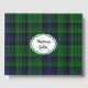 Livre d'invité Plaid mariage fait dans le classique écossais vert, bleu, blanc et noir Abercrombie clan tartan plaid motif. Une zone de texte ovale décorative blanche, à l'avant du livre, dispose d'un texte personnalisé prêt à être personnalisé pour votre mariage.
