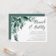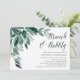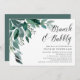 L'invitation au brunch avec douche nuptiale chic présente des feuilles d'eucalyptus vert luxuriants et du feuillage, illustrés par l'aquarelle. Personnalisez avec vos détails de brunch nuptiale alignés à droite, surmonté de "brunch & bubbly" dans un élégant script de calligraphie. Cartes inversées à vert de forêt solide.