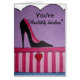 Talons hauts stylets à la mode de roses indien et de noir, sur une boîte à chaussures rose et fuchsia. Très girly et une carte de voeux absolument fabuleuse.