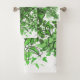 Bath Towel Set Of Three Sizes decorative bathroom amenity and home furnishing decor accessory printed with Abstract Floral Pattern In Black & Green On White by TheFabricSeal print on demand shop at Zazzle.com #ZazzleMade ©️Original. https://www.zazzle.com/store/thefabricseal