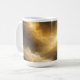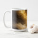 This ceramic mug features an abstract deep space nebula designed with a sophisticated palette of golden yellows, dark grays, and soft white highlights, creating a calm and atmospheric cosmic aesthetic.