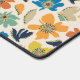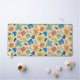 A playful, seamless repeating pattern featuring stylized multicolored flowers and leaves with textured, sketchy edges on a cream background.