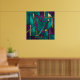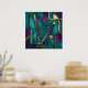 A modern abstract interpretation of a harp in a stunning stained glass style. Featuring a rich palette of teal, royal purple, and gold accents, this geometric musical poster brings a contemporary artistic touch to any gallery wall or music studio.