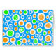 Un design abstrait joli dessiné à la main, composé de formes circulaires en blanc, orange, vert et bleu.