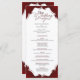 Cette carte programme mariage présente un design minimaliste moderne en rouge gras, créant une impression raffinée et élégante. La première page affiche les détails du mariage dans un format clair et élégant, tandis que la partie arrière met en surbrillance les noms du couple dans une mise en page simple encadrée qui peut être personnalisée. Les tons rouges riches rehaussent le style minimaliste, faisant de cette carte programme une carte idéale pour des mariages élégants, formels et contemporains.